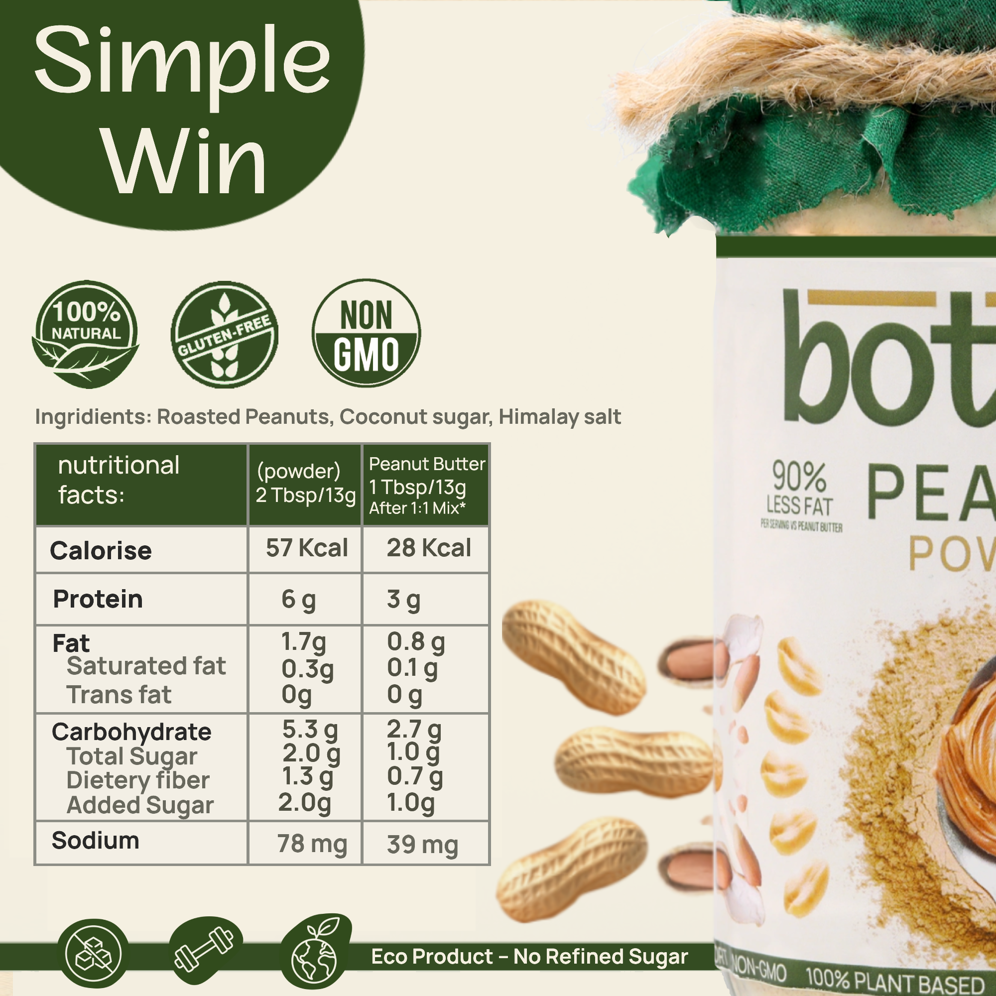 Smart calories: When you mix it with water or a plant-based drink instead of oil or butter, you get an intense peanut flavor with fewer calories per serving. Itโs easy to control how much powder and liquid you use, so you can make a thick spread, a thin layer for toast, or a light shake โ depending on how โheavyโ you want the serving to be.